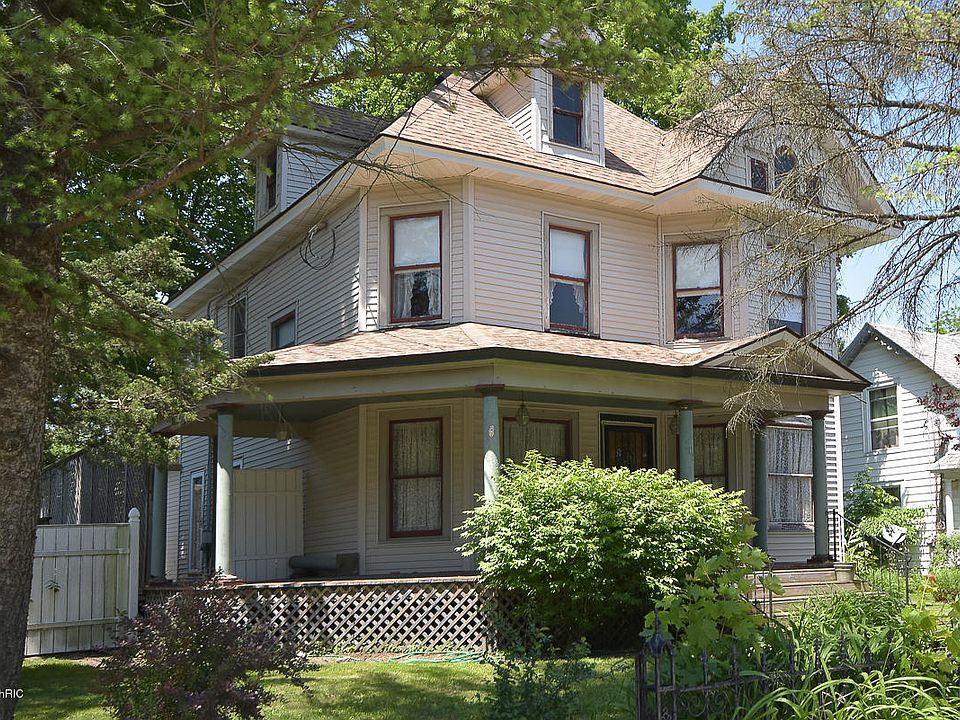 MULTIPLE OFFERS REVIEWED - HOME IS NOW PENDING Great home with charm over more than a century.The large covered porch overlooks the front, side & back yard with a hot tub & perennial gardens landscaped through the yard.Perfect for entertaining, 5 bedrooms accommodate your family & guest along with 2 full baths, a large dining room, living room with a bay window,. The back kitchen has a separate stairway that goes to the bedrooms upstairs. The entrance way has nature wood work through out the stairway & the enter home. The third floor would be ideal as a studio or office space, there is full height basement, which also houses the mechanical items including the updated electrical panel, hot water heater and the natural gas furnace.