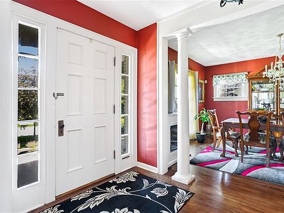 An undeniably welcoming home! A gambrel roof, structured columns, and perfect symmetry define this striking 3 BR 2 BA Dutch Colonial revival as solid buff brick quietly surrounds it in low maintenance longevity. Dual french doors flank either side of the front door, opening in to create a space bathed in fresh air and wonderful natural light from its southern exposure. Columns form the only definition of the open center hall and hardwood floors continue on to picture frame the living and dining spaces with their perfect light-reflecting sheen. Conversing with loved ones is effortless whether you are preparing a meal in the eclectic birch kitchen with a wide-open view of the dining room or taking a seat for relaxation in front of the living room's substantial brick fireplace. There is no worry of rain or mosquitos putting a damper on your summertime plans, when you gather in the screen porch and overlook an intimate backyard space defined by mature landscape. Paved drive, garage.