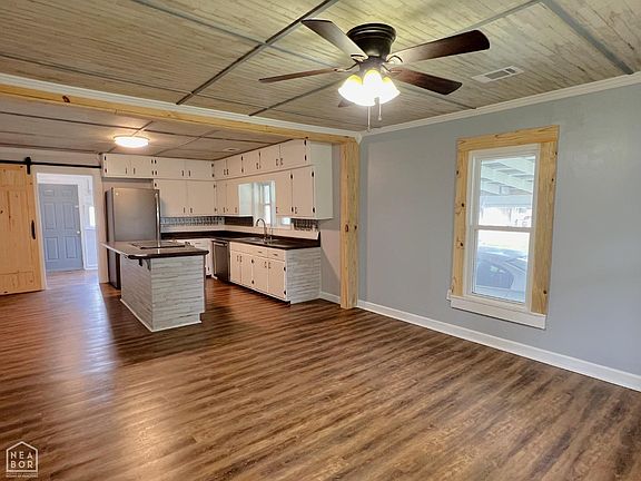 Welcome to 205 E. Illinois, Caraway AR, where charm meets affordability! This delightful 2-bedroom, 1-bath home, priced at $82,500, offers an open concept design across 1030 square feet of living space. Situated on a corner lot, it features a 30x40 wired shop for all your hobbies and storage needs, alongside a durable metal roof and metal siding ensuring low maintenance and longevity. Enjoy energy efficiency and natural light with vinyl windows throughout. The kitchen boasts matching appliances, an island, and plenty of cabinet space, perfect for all your culinary adventures. Stay comfortable year-round with central heat and air conditioning. With updated electrical service, this home is move-in ready and waiting for you to make it your own!