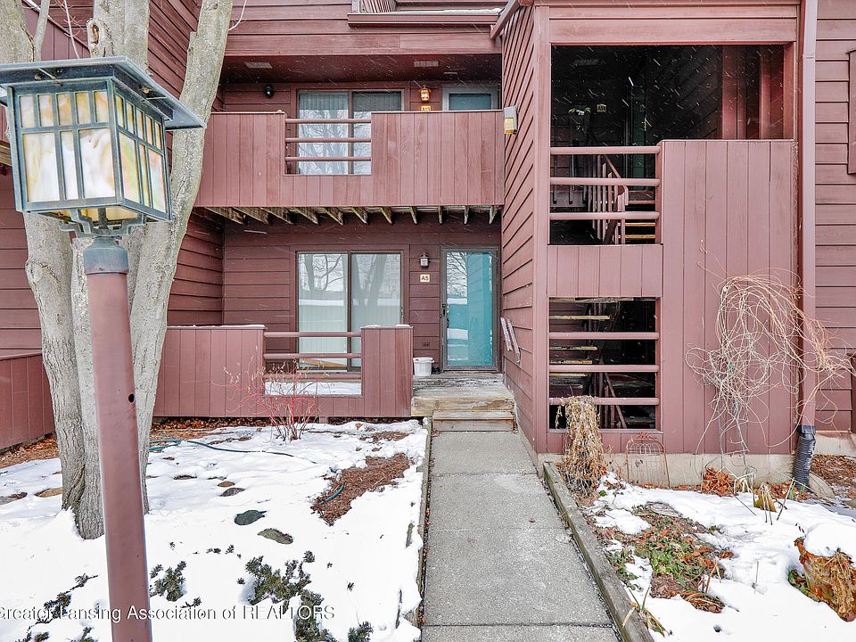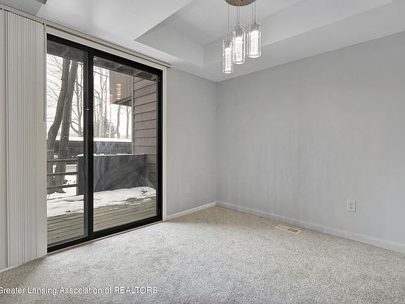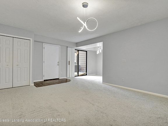 Gorgeous updated first floor condo with new stainless steel appliances, new Samsung washer & dryer located in unit, new quartz counters, new carpet throughout, new vinyl floors in kitchen and primary bathroom, new blinds in all rooms, freshly painted kitchen cabinets, new paint throughout, updated light fixtures, new faucets throughout, new garbage disposal. Good sized basement for extra storage. Front patio and back deck. Water and Sewer included in monthly fee. Close to MSU, easy access to freeways, and shopping.