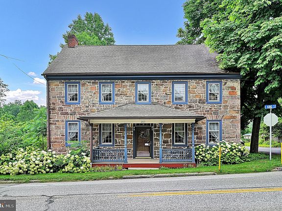 Beautiful well maintained stone farmhouse on 4.32 acres in Abbottstown. Wow-- what a great Adams County Beauty! 3 large bedrooms, 1 and a half baths, 2 car detached garage. Features efficient hot water baseboard heat, 2 fireplaces, high ceilings and nice large rooms, 18" windowsills, large concrete patio out back. The hot tub conveys. You will love the space inside and out. Go play in the creek! Located right across from the Hanover Country Club.