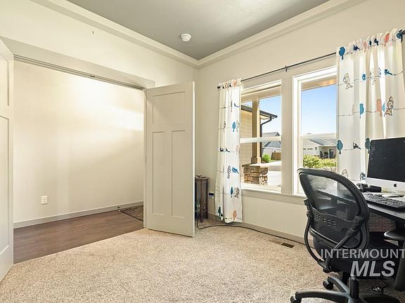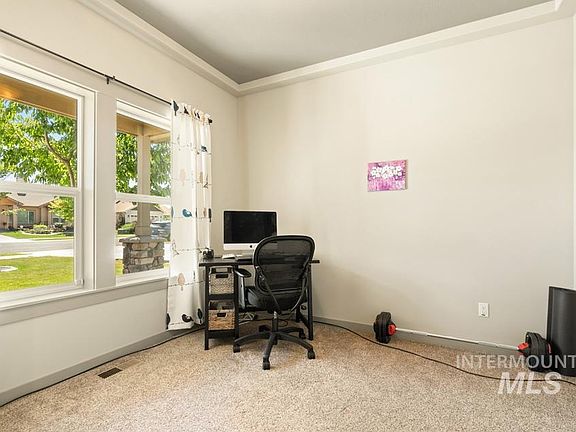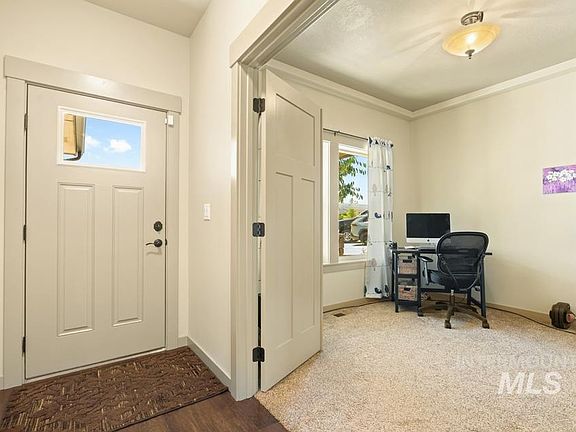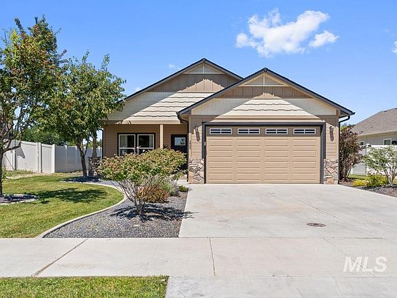 Beautiful turn key home in quiet New Plymouth neighborhood with no back neighbor. This 3 bed 2 bath home with a 2 car garage is in pristine condition and sits on a nice .22 acre lot. 9 foot ceilings throughout with a vaulted great room/kitchen gives it a nice open feel. Beautiful hand scraped hard wood flooring throughout entry and main living areas. Numerous windows provide an abundance of natural light throughout the home. Kitchen features granite counter-tops with a chiseled edge, custom hickory cabinets, double door pantry and a large island with a breakfast bar with a tile backsplash. Master bath features dual vanity with granite counter-tops, large oval tub with shower combo, & large walk in closet. You'll enjoy summer evenings and BBQs on the large covered back patio. Fully fenced back yard with pasture as a back neighbor. This well maintained yard has mature trees and landscaping in both front and back of the home. Don't miss out on this move in ready home! Call for a showing today!