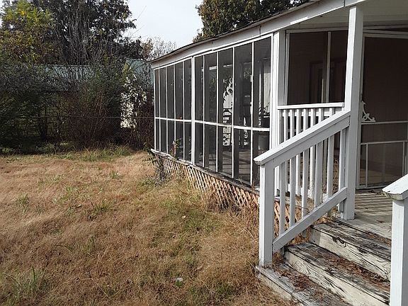 THIS SALE IS CASH ONLY Double wide mobile home (enclosed with house frame and pitched roof) 3 BR, walk in closet, 2 Bath (one tub/shower combo, one walk in shower) kitchen with washer/electric dryer hook up, electric water heater, dining room, 10x20 covered front porch, 10 X 20 screened back porch, 10 X 8 covered back porch, storm shelter, partial chain link fence on sides of property and detached, aluminum double car cover.