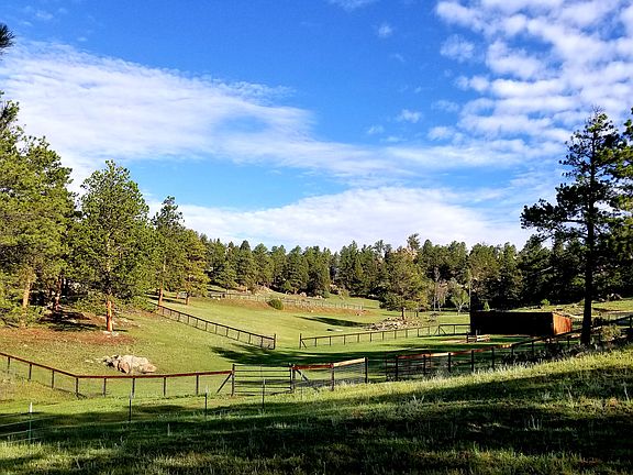 One of a kind property nestled in Beasley Hills. This 60 acre property boasts 2 homes, agricultural zoning, fencing, barns and stalls, views of Pikes Peak, the Collegiate Peaks, the Sangre de Cristo mountains and Wrights Reservoir, a creek, and much, much more! The main house has 3 bedrooms, 3 baths, an attached 2 car garage, amazing views, and overlooks the ranch. The second home has 2 bedrooms, 2 baths, a detached 2 car garage, fire pit, and beautiful valley views. Video walk through on "Virtual Tour 2" icon. The ranch consists of fenced and cross fenced property, with stalls and barns and even the Hotel Eggcelsior for the chickens! The gently rolling ranch is perfect for livestock or horses. The deer-fenced garden area can be irrigated by rain runoff from the main house or well. There are no covenants restricting your use of the land. The second home offers good income potential as a rental, Air BnB, VRBO, or use as a guest house for family and friends. The lower elevation has a deeded easement with access to the canyon and creek. The "Chateau Ridge Ranch" is ready for your Colorado dreams! Low maintenance features of the main house include Hardie brand 50 year engineered wood siding and composite decking. Soft close alder cabinets with pull out drawers. WIFI thermostats. High speed Teller WIFI is transferable to the new owner. 8 person Avalanche hot tub with Bluetooth. Extra wide stairways. Scratch resistant bamboo flooring. Infrared deck heaters. LED lighting throughout. Dual furnace provides comfort and economy. Propane gas for BBQ grill. Insulated garage doors. Video walk through on "Virtual Tour 2" icon.