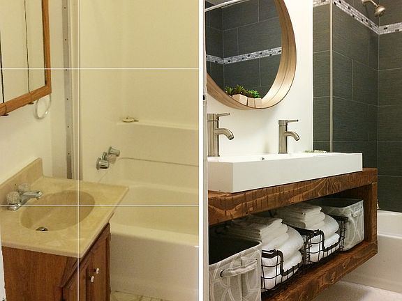 - Bathroom: Shower over Tub - 1, Stall Shower, Tile, Double Sinks, Updated Bath, Full on Ground Floor