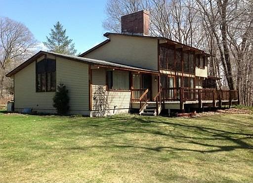 Contemporary Deck home on lovely acre plus lot bordering the Weir River and the Trustees of the Reservation Weir River Farm. The home has an open floor plan with walls of glass offering views of Weir River and woods beyond. There are 7 rooms total, with a 1st floor master suite and 2 good size bedrooms and bath up. A 15x13 enclosed porch and a 12x36 rear deck looking out to stone walls and the Weir River both offer wonderful exterior family summertime entertaining areas. A small barn w/loft with interior space of 758 SF is a great addition for storage or office space