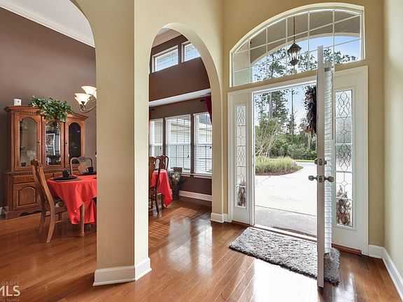 Lake front home. Beautiful hardwood floors, high ceilings, fireplace, office (4th bedroom) formal dining, breakfast nook, solid surface counters, covered porch to enjoy the view. Semi open floor plan where you are not trapped in the kitchen, but the sink is not the first thing you see when you walk in. Split plan with master tucked to the back corner for the lake view, double trey ceiling, door to lanai and spa like master bath with jetted tub, tile shower, double vanities, linen closet and walk in closet. On the other side of the home are two large bedrooms & a full bath. Enjoy the amenities of Winding River w/pool, 24-hour fitness center, Savannah Club, tennis, sports field, parks, walking trails & active social member. Only 5 minutes to Kings Bay Naval Base. 25 minutes to Jacksonville airport and Brunswick. Enjoy coastal living.