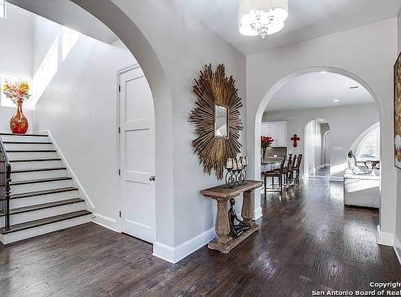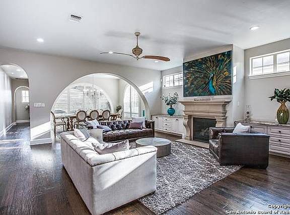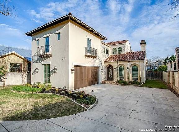 Modern Mediterranean home on a beautiful street in Terrell Hills.The double island kitchen will be the gathering place for family and friends. Top of the line stainless appliances. Kitchen is open to family/living room with fireplace and separate dining room. The generous master is down with wonderful closet space and a luxury spa bath. Upstairs bedrooms have Jack and Jill baths. Up you will find a game room and separate media room. The outdoor family room has a great kitchen and overlooks the pool and spa.