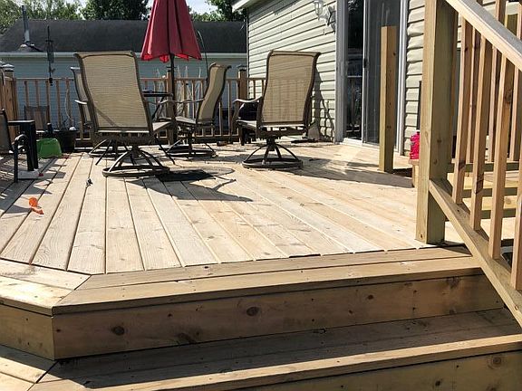 Enjoy one level living in this 4 bedroom 2 bath manufactured home with over 2,100 sq. ft. with private master bedroom & bathroom plus 2 walk in closets; bonus family room or office off living room plus pantry room, laundry/mud room area and open concept kitchen, dining and living room featuring gas fireplace & lots of natural light! Patio doors leading to new deck, patio & firepit area with playset in huge backyard (over half Acre lot). Detached 3 car garage has part insulated, new doors & wifi GDOs! Some new flooring & light fixtures throughout - best of all, brand new shingles on home & garage summer 2019 - siding in process of being replaced on entire home and garage!!!