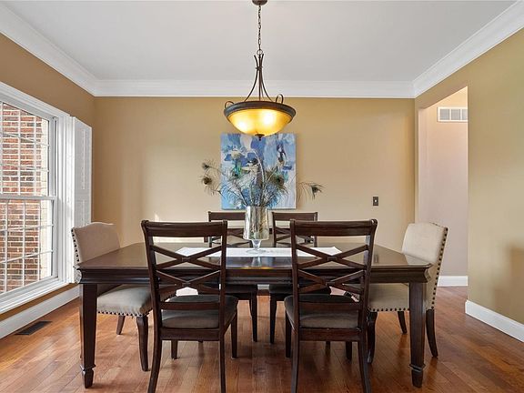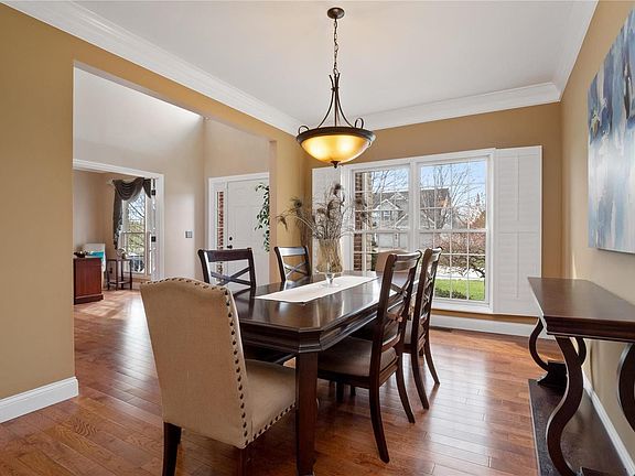 4 bed, 2.5 bath home with 2968 sq. feet of living space & located in desirable Dardenne Estate subdivision. Main floor boasts hardwood flooring & freshly painted interior. Foyer opens to dining room with crown molding & updated lighting. French door leads to office with crown molding. 2 story great room has transom windows, ceiling fan with light & gas fireplace. Sitting room/den is located off great room. Kitchen boasts 42" cabinets with crown molding, tile back splash, granite counter tops, center island with breakfast bar, stainless steel appliances & pendant lighting. Breakfast room has sliding glass door that leads to deck & spacious backyard. Main floor laundry & half bath have ceramic tile flooring. Master bedroom has ceiling fan with light, over sized custom closet & en suite bath. Master bath has separate soaking tub, step in shower, double vanity & sinks. 3 additional bedrooms have ceiling fans with light & custom closets. Unfinished LL has rough in, sump pit/pump.