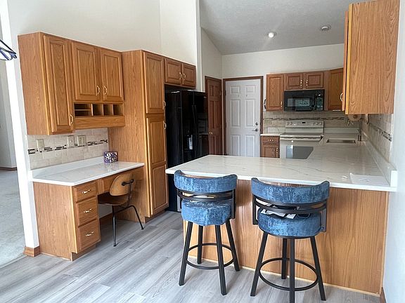 Open inviting floor plan! Spacious family room with Cathedral ceiling, gas fireplace dining room which opens to refurbished deck. Hidden updated kitchen.So close to shopping, schools, churches,Restaurants, easy access to travel. Quality updates:Kitchen: Bosch Dishwasher,GE Microwave, Whirlpool Refrigerator, countertops, backsplash. LVP flooring, Convenient planning desk. Hallway laundry closet.Updated baths. Custom finished basement, daylight windows, huge family room with custom cabinetry . You will have space and a place . Sump pump has removable custom cabinet with back up battery. The office with daylight windows has full closet. Adjacent to full bath. Sewer line replaced September 2025. New apron. Roof replaced about 3 years old.