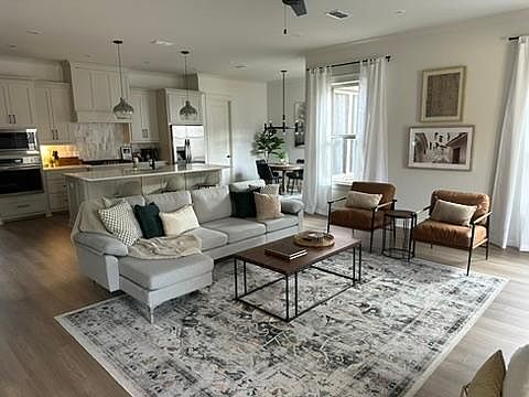 The thoughtfully designed floor plan ensures a seamless flow between spaces, ideal for any family's lifestyle. Step inside to discover an open floor plan with wood flooring throughout the home. Enjoy the abundance of natural light flooding through the living area windows. The centerpiece of the space is a generously sized island, offering plenty of room for meal prep, casual dining, and lively conversation. The primary suite offers the ultimate in relaxation with a large bedroom, jacuzzi soaking tub, walk-in shower, and large vanity with double sinks. The custom walk in closet is an added bonus!