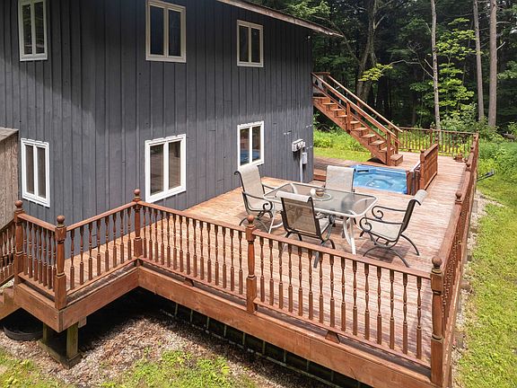 This 4-bedroom, 2-bathroom, fully furnished chalet just off the Killington Rd is ready for you to move in and enjoy! Flat level driveway on the end of a quiet, town maintained road makes access easy to the large front wraparound deck complete with a private sunken hot tub. The lower level contains 2-bedrooms, full bath and an open kitchen/dining area with a wood stove. Upstairs there is a large family room, 2 additional bedrooms, another full bathroom and wood burning fireplace. This home is perfect for year round use! The convenient location makes this the perfect place to enjoy all of Killington's activities and attractions. In the summer months stay cool with the mini split cooling system which serves as an additional source of heat during the winter months. This property is permitted as a two-family duplex. The current owners have used it as a single family primary residence but it could be converted back to two units to use as a multi-family if desired.