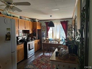 Hurry, this won't last long! This classic home flaunts numerous tasteful upgrades. The 3-2 bedroom setup (easily modifiable due to a wall that was removed for larger bedroom) features an array of improvements including a recent roof, modernized furnace, updated hot water tank, and a refreshingly renovated bathroom, amongst others. It also boasts an upgraded back porch with a brand-new sliding glass door leading to an inviting deck, perfect for outdoor fun or leisurely berry-picking from the backyard's mulberry tree. Strategically positioned near major highways like I81, I481 and NYS Thruway, and a stone's throw away from Syracuse Hancock Airport, under 5 minutes. Reach out to your agent for a quick 15-minute viewing on Friday the 28th, between 2p - 7p. We're hosting an open house (no prior appointments needed) on Sunday, the 30th, from 11a-2p. Please ensure your offers are submitted by 6pm on Monday, the 31st.