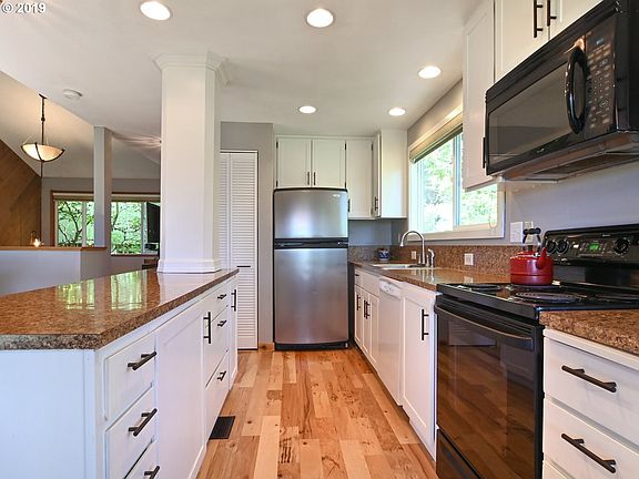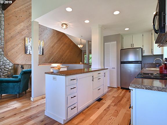 Beautiful contemporary condo set in the trees of South Eugene. This private, updated home is an end unit next to a forested area with trails and filtered views of the valley. The open and bright kitchen has new counters and throughout are gorgeous engineered hardwood floors. New heat pump 2019. Enjoy the convenience of condo living along with the privacy and view of the forest from every window. HOA includes pool and fitness room.