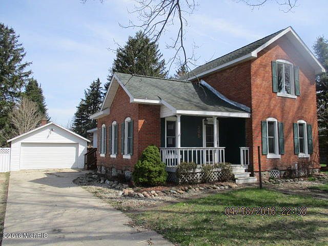 This gorgeous 2 story, brick home features a porch off the front of the home and a large deck off the back. The living room has vaulted ceiling with a ceiling fan and the kitchen has higher ceilings with brick and wooden walls, along with wood floors. There are three bedrooms and two full bath. Outside you will find a two stall detached garage and a large backyard. Buyer responsible for any well and septic inspections, if applicable. Buyer responsible for any de-winterization and re-winterizat ion fees, if applicable. HUD HOME SOLD AS IS. HUD does not discriminate, and promotes fair and equal housing opportunities for all.All information Represented herein is approximated and individual verification is recommended. Information is not guaranteed.