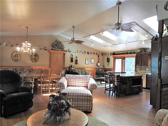 Your Slice of heaven on 21 Acres in Ohioville! Nested 400+feet off of the country road is your peaceful retreat! This well maintained home is loaded with upgrades.âEUR¦Custom stick built with an open concept! Unique ceilings and open floor plan with custom cherry kitchen, a 6 seat island , all stainless appliances, open bulkhead, lots of storage and breakfast nook. The heavenly view from the primary level deck is nothing but trees, tranquility and wildlife, otherwise known as your back yard. The first floor master suite has a luxury bath, fireplace with gas logs & access to private deck, overlooking your swimming pool! There are 3 additional bedrooms on the main level. Lower level is home to a HUGE game room, cozy log burning fireplace, pool table, mini gym and his and her offices! The offices could easily function as additional sleeping quarters, sewing room, art studio, play roomsâEUR¦the list is endless! The game room is steps from the sliding doors that lead to the yard.
