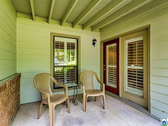This beautifully remodeled condo home is on the first floor (no stairs!) and comes fully furnished if needed. The home features three-inch plantation shutters built-in shelving, a wood burning fireplace, and French doors leading to a relaxing covered patio. Hardwood laminate is throughout the living area. Storage closet at front door or convert to a coat closet. The kitchen is equipped with granite counters, dishwasher, stainless refrigerator, oven, built-in microwave and washer/dryer. Custom shelving in the master closet, master bath remodeled (2015). Hot water heater (2018). Roof (2019). This home is great for those who desire a low maintenance property or an investment property. $215 a month HOA fees covers Water, Sewer, Trash, termite, Exterior Maintenance, Pool, Tennis Courts, and more! Alabama Power is the only utility bill. A short walk to the pool. Convenient to Hwy 31, Valleydale, and I65! Hoover school district! See the virtual 3-D tour.