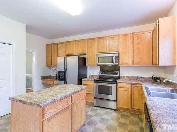 Great subdivision just 10 minutes from downtown Raleigh. Open concept living. Kitchen boasts SS appliances and tons of storage. Large pantry and center island for extra workspace with built in desk area. Kitchen opens to family room with gas fireplace and custom built in shelving with lots of natural light. Formal dining with custom moldings. Oversized master suite features dual vanities, separate soaking tub and huge walk in closet. Rear deck overlooks large flat fenced in backyard. Security system.