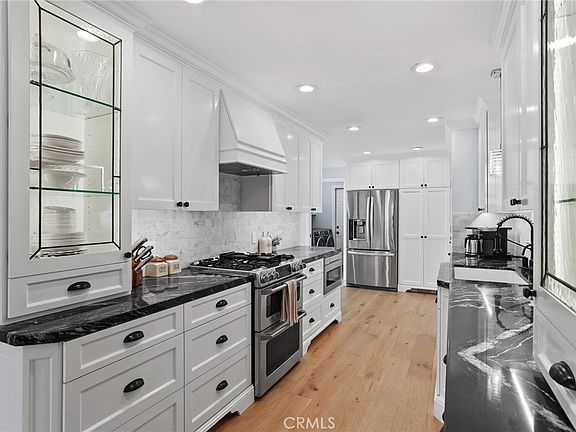Welcome to 205 Garnet Avenue, Newport Beach! Nestled in the tranquil part of Balboa Island, just north of the charming Balboa Ferry, this stunning four-bedroom, four-bathroom home offers 2,241 square feet of luxurious living space on a 2,550-square-foot lot. The home is situated on a street that is notably wider than many others in the area, providing a more spacious and open feel. The underground assessment has already been paid, adding extra value and peace of mind to this remarkable property. Recently remodeled by HGTV stars The Flipping El Moussas, this pristine home is filled with designer touches and an abundance of natural light that will leave you in awe. Step inside to discover wide plank white oak flooring that flows seamlessly throughout, offering both beauty and ease of maintenance. The chef's kitchen is a true showstopper, featuring white shaker cabinets, stunning countertops and backsplash, a custom hood vent, and high-end appliances—perfect for culinary enthusiasts. The primary suite is an impressive oasis with vaulted ceilings, a cozy fireplace, a private balcony, a large custom-tiled shower, and a new vanity. The secondary bedrooms are equally inviting, offering ample closet space and the same elegant white oak flooring. All bathrooms have been beautifully appointed with new vanities and custom-tiled showers. Embrace California's indoor/outdoor living by opening the Dutch door or enjoying your morning coffee on the spacious front patio or one of the multiple balconies. Additional features include a versatile bonus room and full bath downstairs that can be converted into a fifth bedroom. There is also a secondary entrance to the back half of the upstairs, providing an opportunity for a 1-bedroom, 1-bath attached Junior ADU rental unit if desired. With its prime location in a quiet part of the island and impeccable design, this home is perfect for entertaining or enjoying the relaxing coastal lifestyle. Don't miss out on this remarkable property—schedule your visit today!