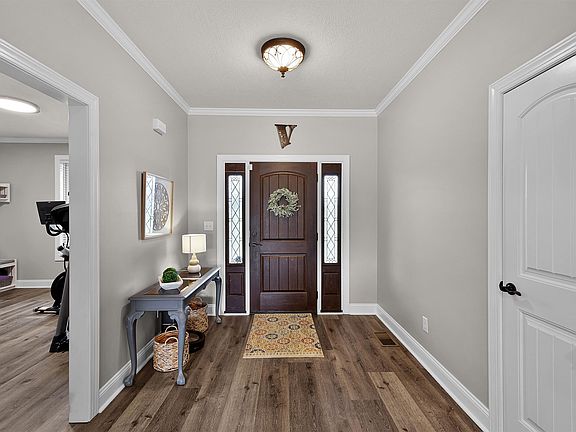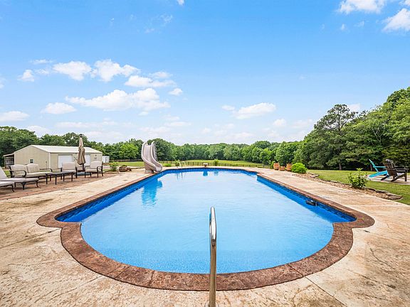 Tranquility & luxury abound in this custom home w/ 5 bedrooms, 2.5+ baths, open concept & split floor plan on approx. 8 acres (more available). Updated in 2023 with new flooring, quartz countertops, kitchen cabinets and paint. Featuring a large laundry with sink, safe room, GENERAC generator, bonus room upstairs/5th bedroom, walk-in attic, huge composite wood deck, gorgeous saltwater pool, cozy firepit, 4 car workshop, pole barn, tree house, zip line and chicken house. Schedule a tour of your dream home.