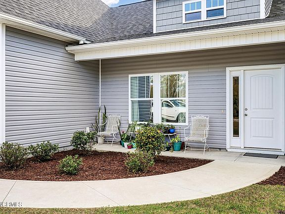 Beautiful 3 bed/2 bath home in Buccaneers Retreat is move in ready and waiting for the right buyer! Positioned on over an acre, this charming home features a gigantic backyard with swing-set. Take a seat on the patio and enjoy the privacy and peaceful view of nature. Perfect for family fun or entertaining guests. The covered front porch welcomes you as you pull up to the home. Inside is an open floor plan that presents as both modern and crisp. The living space is inviting and spacious with a kitchen island offering a magnetic spot to gather around. You don't want to miss this opportunity to find yourself a home close to the beach, shopping, golfing, and the highly sought out Topsail School district.