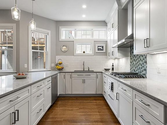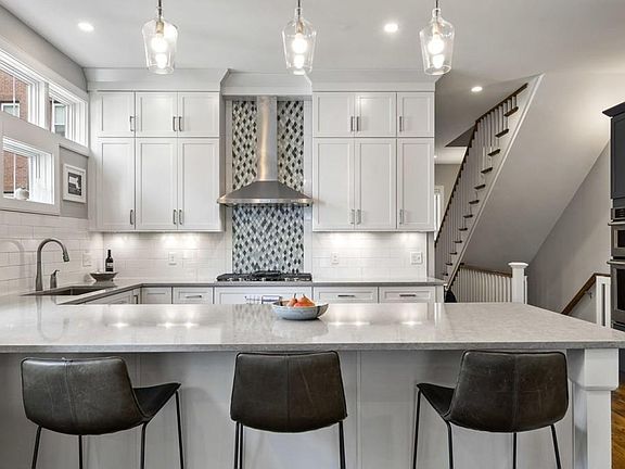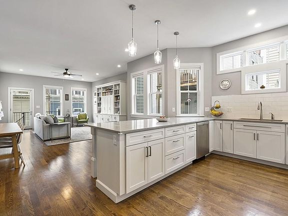 OH by appointment this Sat. May 23rd from 12-2. Come see this rare, custom-built beauty w/ a 3-car heated garage. This stunning home was constructed in 2018 & offers 4 bedrooms & 3 full bathrooms. The open layout features soaring 11' ceilings & a showpiece kitchen w/ quartz counters, huge island, stainless appliances, exquisite tiling and white & navy cabinetry. The kitchen flows into the generous dining / living room w/ built-ins & adjoining deck. Also on the main floor is a full bathroom & the first of 4 bedrooms. The top floor features a spacious master suite w/ a walk-in closet & contemporary bathroom. Two more spacious bedrooms, another walk-in closet & a 3rd bath w/ double vanity are on this floor. The home's flat roof is the ideal spot to add a roof deck w/ city views. More features: fenced patio, laundry room w/ sink, 3-zone central AC/heating, abundant windows & hardwoods. Finally, your search for parking is over: there is a 3-car heated garage w/ plenty of storage.