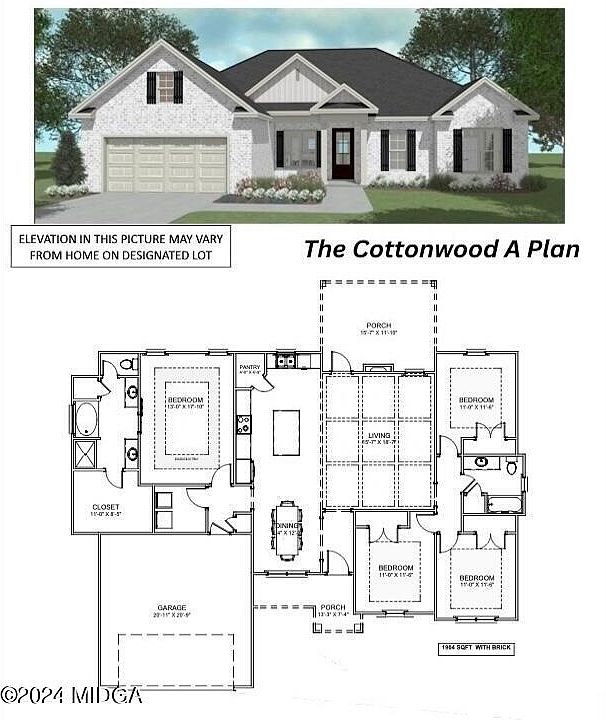 Introducing the Cottonwood A Plan, a 4bedroom, 2 bath home meticulously crafted by Driggers Construction. This charming residence boasts 4 bedrooms and 2 baths, thoughtfully arranged in a split floor plan for optimal privacy and convenience. Step inside to discover an inviting living area, seamlessly blending with a gracious dining space, prefect for hosting gatherings and creating cherished memories. Kitchen is adorned with granite countertops and tile backsplash and island overlooking living area featuring coffered ceilings and an electric fireplace. Tranquility awaits in the owner's suite with a luxurious garden tub ,tile shower, and walk-in closet. Outside a covered patio beckons for dining or leisurely lounging, overlooking a meticulously landscaped yard. This is a true masterpiece in modern living. Schedule your tour today!