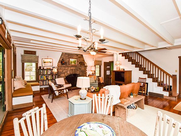 Charming cottage built in 1920 as the International House for the Buck Hill Falls community, the main living room still has the words International House written in multiple foreign languages along the walls. Steeped in history this home still offers many of the original architectural details of the period with a native stone fireplace, large screened porch, beamed ceilings and hardwood floors. The home features 6 bedrooms and 2.5 baths, a charming kitchen, spacious living room and dining room with built-in cabinets. All this on a wooded lot with plenty of parking. Buck Hill Falls offers a resort lifestyle in a historic setting with 27 holes of golf, 10 har-tru tennis courts, Olympic-sized pool and over 4,000 acres of private land with trails, streams & waterfalls. Perfect mountain getaway