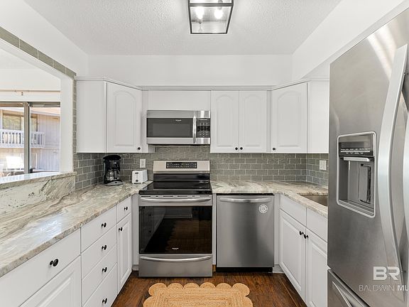 Two bedroom two bath unit overlooking the 18th green of the Lake Forest golf course with a spacious back porch. This property IS CURRENTLY ACTIVE on AirBnb and VRBO - since October 2022 and generated over 41k +/- annually. Owner is willing to help transition buyers if they want to continue short term on this property and will present more detailed numbers for revenue and overhead. Stainless steel appliances, and stackable washer/dryer that conveys with the property. Oversized master bedroom within-suite bath. Both the master tub/shower and guest shower have been professionally recoated in epoxy enamel -a fresh white in September 2022. Water Heater replaced October 2022 and interior/exterior AC units are 2011 (coils cleaned and units serviced 06/06/2024) Conveniently located near shopping, interstate, restaurants, and medical facilities. **Seller is a licensed realtor in the State of Alabama** Buyer to verify all information during due diligence.