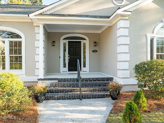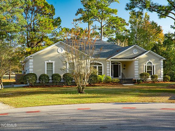 Here is your opportunity to own a lovely home in the sought after community of Olde Point. This lovely cul-de-sac property is on the 10th fairway of the Olde Point golf course, and offers easy water access for those that love to be on the water. Keep your boat in the driveway and launch it right here in Olde Pointe for a low annual fee. Even if the wooded, serene, and private location weren't so perfect, this home would still have so much to offer. The roof was installed in 2018, it has newer appliances and fixtures, smart switches, and Nest thermostat. Walk through the large foyer, and snuggle up in the spacious living room in front of the fireplace, or enjoy a good book and watch the golfers approach the green in the beautiful sunroom. French doors that open up to the dining area and the living room allow for comfortable indoor/outdoor living. The primary suite has a jacuzzi tub, glass shower with rain head, and a private captain's closet. The walk-in closet is an organized person's dream, with ample room for clothing, shoes, and accessories. Step outside of your bedroom to a private porch to sit and enjoy the morning light. From the spacious two car garage, you can access your holiday decorations with ease in the extra-large attic with walk-up stairs, or finish it off and enjoy all the extra space. This home is also wired for a generator, and is located in the highly desired Topsail school district. Home Warranty included for your peace of mind, and up to $1500 lender credit using preferred lender. Homeowner has fence plans that have been approved by the HOA. Olde Point Golf Club has membership packages available for golf, tennis, and the pool. Whether you love getting out on the water, hitting your golf balls in the water, or just taking a quiet stroll around the block, this home could be the one to give you the life you love.