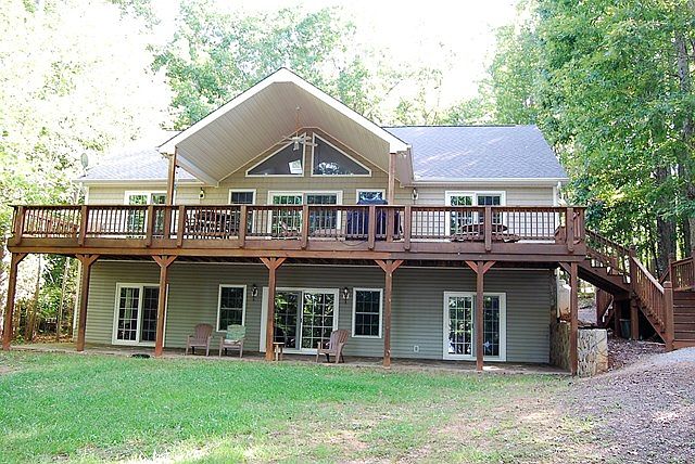 Beautiful, Waterfront Home. Well-maintained, 4 Bdrm with Bonus Room, situated on over an acre lot with a single boathouse w/lift & Approx.3.5 ft. of clear water! Move-in Ready. NEW HVAC! Comes fully furnished! Located on a large cove off of Main Lake in the SW Quad. NO BRIDGE BETWEEN DOCK & MAIN LAKE! Convenient to I-85 & Hwy 1 to the RTP area and Richmond, VA. Full size, Walkout Basement with open family room and Ping Pong table in game area. Laundry Room, Full Bath, Bunk Room, and Bonus Room all with Water Views. Main level deck runs the complete length of home with good water views and covered area in the middle. Home has been rented WEEKLY from Memorial Day to Labor Day for the past 5 years so INVESTORS add this one to your inventory!! KAYAKS included too, so come and play!