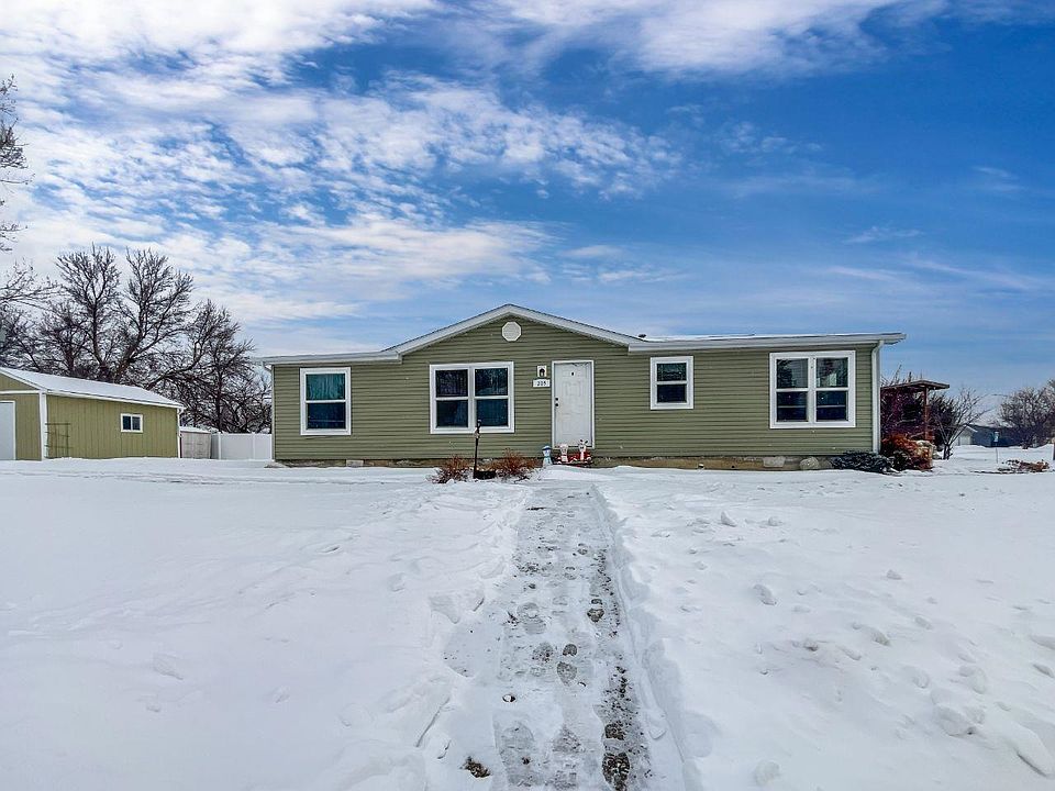 Welcome to Burlington and walk into this adorable 3-bed 2-bath manufactured home sitting on a beautiful oversized corner lot. Inside you’re greeted by an open concept kitchen, dining, and living room. This home has an XL master bed with a master bath attached. It has new vinyl plank flooring through the living room that was installed in 2022 as well as new siding and shingles that were installed in 2019. Outside you have 3 sheds as well as a heated 2 car garage with a work bench. Did I mention you also have a beautiful patio area with a built-in propane fire pit, a tiki bar for all your summer entertaining all enclosed by a privacy fence? This home sits on posts and piers with a 4 ft crawl underneath. All the boxes checked? Perfect, come on out and take a look today!
