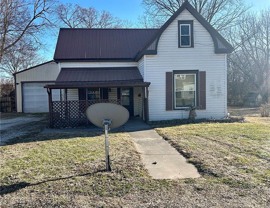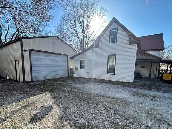 Nice older home with vinyl siding and metal roof, and newer windows, 2 bedrooms on main floor, 3 non- conforming rooms (used as bedrooms in the past) upstairs. New vinyl plank flooring in the kitchen. 24 X 30 shop/garage, insulated, 220 electricity ,car lift, concrete flooring, heat and cooling, 1/2 bath, attic fan and lots of storage! Nice covered front porch and above ground pool with large deck and big fenced in back yard! Selling AS IS- house needs TLC