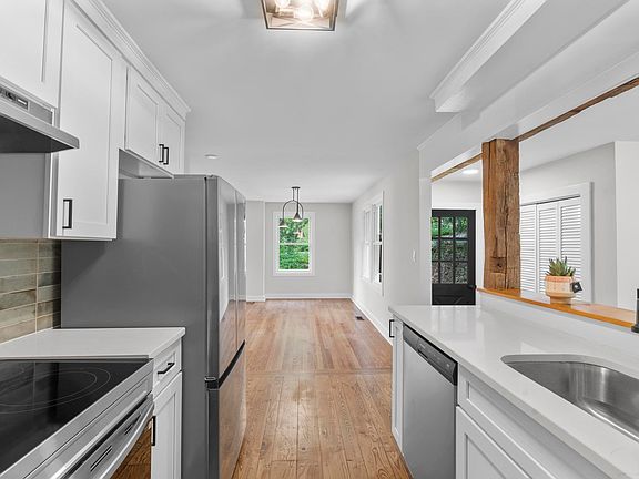 205 Great Quarter Road - A Rare Find at an Incredible Price! This stunning, completely remodeled home offers exceptional value - & it doesn't stop there. In addition to the beautifully updated main home, you'll also enjoy a versatile detached structure that's partially finished & perfect for a variety of uses. The detached "barn" provides ground-level storage, plus finished 2nd and 3rd floors complete with electric, flooring, windows & walls, ideal for a bonus room, home office, studio, gym, or creative space. From the moment you arrive, you'll be impressed by the beautifully paved driveway and walkway that leads to the enclosed front porch - perfect for keeping clutter out of the main living area. Inside, the home seamlessly blends modern renovations with the timeless charm of an older home. You'll find gorgeous hardwood floors throughout, fresh paint & elegant finishes. The bright & airy living room, filled with natural light from oversized windows, flows effortlessly into the dining room. The brand-new kitchen features stone countertops, sleek stainless appliances & crisp white cabinetry. Just off the kitchen is the spacious family room, complete with a cozy wood stove, abundant windows, a half bath & access to the private backyard overlooking the woods. The main level includes a beautiful primary suite featuring a fireplace, walk-in closet & ensuite bathroom. Upstairs, you'll find 3 additional bedrooms that share a stylish full bathroom, offering plenty of space. This home is packed with new features and upgrades throughout! Enjoy peace of mind and modern comfort with a new roof, new forced hot air system with central air, new oil tank, and a new water filtration system with UV light. The property also includes a full basement waterproofing system with a transferable warranty, ensuring a dry and worry-free lower level. Outside, you'll love the freshly painted exterior, new paved driveway, beautifully built retaining wall, and new fencing that enhances both curb appeal and privacy. Several new windows add to the home's bright and updated feel - and there's still so much more to appreciate! The photos with furniture are virtually staged. multiple offers. The seller is asking for everyone's highest and best by Sunday 5:00 PM