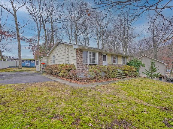 Potential abounds in the ranch home set in beautiful Forest Hills with easy access to downtown Pottsville and Route 209. Perched on a bluff overlooking the valley below, the home offers lovely views from its front windows, with mature trees and foliage dotting the lot. The front door opens into an open, L-shaped Living and Dining space with ample light from a front bay window and glass doors opening to the enclosed porch to the rear. The kitchen is bright and offers a functional layout. Two beds and a full hall bath pair with a master bedroom with half-bath ensuite to complete this level. Downstairs begins with a spacious family room, a large window allowing for ample daylight. Beyond, a laundry room with storage cabinetry, half-bath, and storage room. To the front, spanning the home side to side, a utility room with storage and workshop space offers an exterior door making this a walk-out! Outside spaces include the enclosed porch opening to a deck as well as the yard with mature trees and a welcome storage shed!