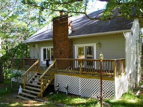 Beautiful contemporary salt box home located on a cul-de-sac in Pocono Mountain Lake Estates with lots of amenities.Features 4 bedrooms,2 baths, with hard wood floors in dining room and marble floor in the kitchen.Open floor plan with cathedral ceilings,full walk out basement,and a pellet stove fireplace.This home has 2 beautiful decks for your relaxation Walking distance to the beach at the lake, Beds Description: 2+Bed1st, Beds Description: 2+BED 2nd, Baths: 1 Bath Level 1, Baths: 1 Bath Level 2