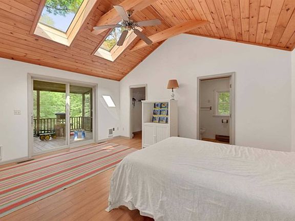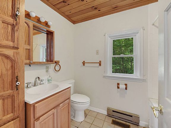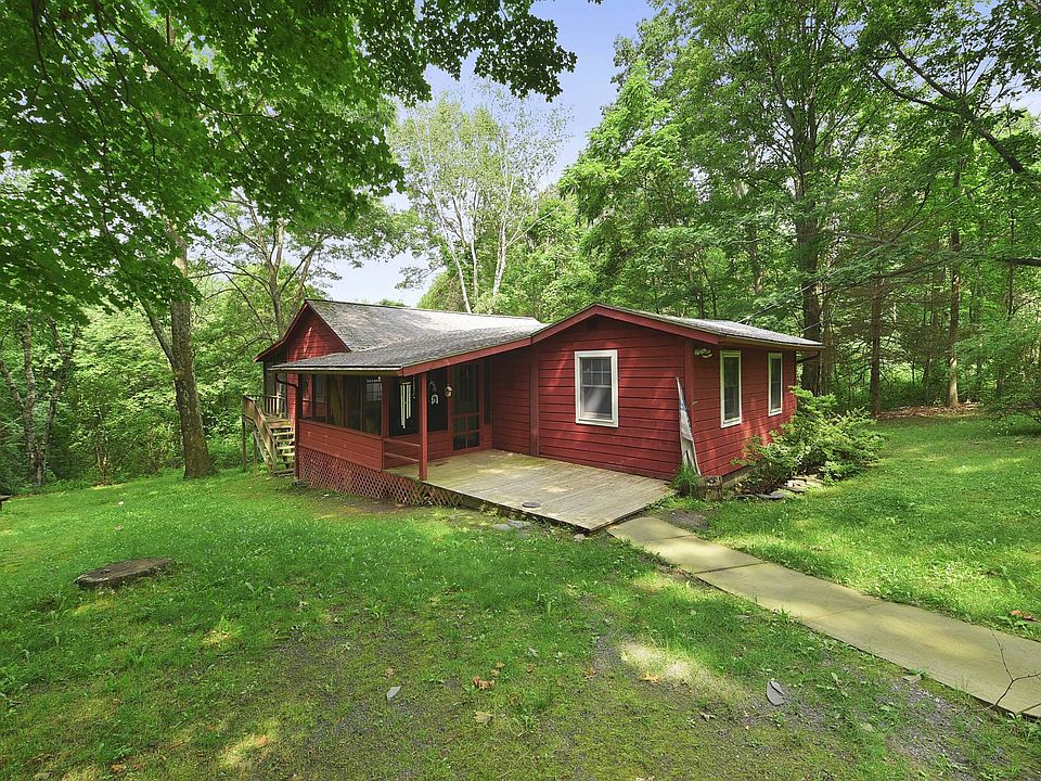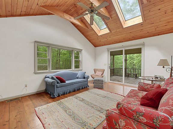Welcome home! Enjoy the sounds of silence in this fully updated house on a hill, featuring bright skylights, wide plank flooring, vaulted ceilings, and modern amenities. On six acres of scenic beauty, relax with a good book on the airy screened in porch or seek solace down the foot trail to the tiny tea house in the woods. Take a trip to the trendy village shops, restaurants, and local movie house just five minutes away or visit the nearby rail trail, historic sites, and other points of interest. If you're looking for character and comfort, this is it!