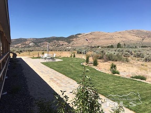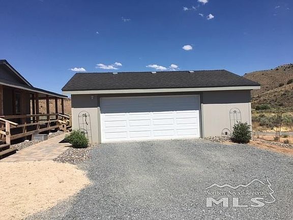 This scenic 3 bed, 3 bath home is located about 45 minutes north of Reno. Large kitchen includes trash compactor, ample cabinet space and an island. Separate family room contains a gas fireplace and built-in shelves. Office also has built-in shelving. Master suite offers a walk-in closet, double sinks and a shower stall. Laundry room has cabinet space and a sink. Includes a water filtration system and detached over-sized 2 car garage.