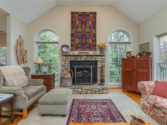 Beautifully maintained home that sits on 3 beautifully landscaped lots in Montreat. Plenty of parking and privacy. Living room with large stone gas fireplace and vaulted ceilings. Separate 2 car garage with finished space above. Lower level of the home provides separate entry and additional living space. Spacious and open feel with lots of natural light. Nice covered front porch and large screened-in back porch.