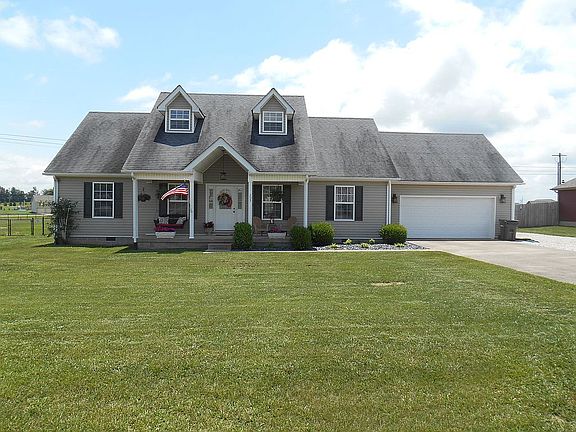 Adorable ranch with vaulted ceilings. Large eat-in kitchen. Spacious laundry room, walk-in closet in master bedroom. Split bedroom design. Covered Front porch with columns. Large level fenced in backyard with back deck and stone patio. Over-sized 2 Car attached garage, concrete drive and sidewalks. Brand new 50 X 30 RV Garage / Workshop with water and electric. Call (270)889-1371 to set up a showing.
