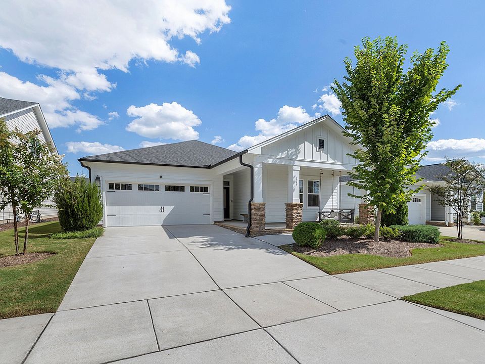 Charming One-Level Living in Highly Sought-After Wendell Falls! Welcome to this beautifully maintained 3-bedroom, 2-bathroom ranch-style home nestled in the heart of the vibrant Wendell Falls community—one of the Triangle's most desirable neighborhoods. Enjoy the ease and comfort of one-level living with an open concept layout perfect for entertaining and everyday life. Step inside to find a spacious kitchen featuring a huge island, stainless steel appliances, and ample cabinetry that flows seamlessly into the living and dining areas. Natural light fills the home, highlighting the thoughtful design and warm finishes throughout. Back windows are tinted. Outside, you'll love relaxing on the covered front porch that overlooks community open green space perfect for morning coffee. The screened-in back porch provides a tranquil retreat, while the large fenced-in backyard offers privacy and plenty of space for pets, play, or gardening. Located in a golf cart-friendly community, enjoy quick and easy access to neighborhood restaurants, cafes, and parks. Wendell Falls offers resort-style amenities including a clubhouse, pool, fitness center, trails, and more. This is low-maintenance living at its finest with HOA covering all landscaping maintenance for this home!