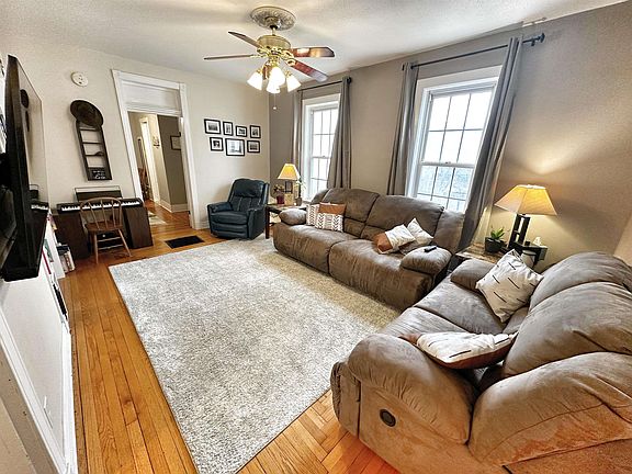 Don't miss out on a chance at this spacious home located above the banks of the Turkey River in the heart of Elkader, Iowa. Just steps across the historic Keystone Bridge from downtown Elkader, this 4 bedroom, 3 bathroom home has been recently refinished to enhance the character and charm of its earlier years. With an inviting foyer, open concept kitchen/dining space, butcher block peninsula, on-suite master bathroom, and stunning views of the river, you can't go wrong. A second level complete with a full kitchen, family room, bedrooms and own full bath provides creative opportunities for guest space, income opportunity and more! With a large deck, unique historic foundation relic patios and river frontage, the backyard screams adventure. Call your agent to schedule a private showing today!