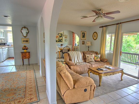A light & airy home in popular west Sedona. This home features 3 bedrooms, large game room/office, formal dining rm, eat in kitchen, w/gas stove. The living room is an open concept living room with wood burning fireplace. Living room walk out to a covered deck, overlooking the mature trees in privacy. Two car garage & paver driveway. RV Parking in adjacent driveway on the other side of the home.