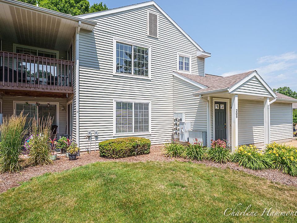 NOT LISTED FOR RENT: This Beautiful 1 bedroom, upper unit is ready for it's new owner. Cathedral ceilings creates open and bright floor plan with covered deck to enjoy morning coffee/tea. Updated walk in shower, newer furnace/AC, custom blinds, 3 new windows, newer hot water heater. HOA maintains lawn, snow, trash, water and sewer under $250 monthly!! Water for lawn is on private well so dues are more reasonable than most condo communities. Reserve study done and assessment for 2025 has been paid! Walk to downtown Rockford or White Pine Trail. Attached garage w/storage. Large walk in closet in bedroom and also large pantry in kitchen. Buyers to verify what they deem important. Non Warrantable Condo, please check with lender. Seller reserves right to call highest and best.
