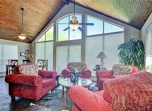 Luxury home custom built in the most desirable Pottsboro lakeside community. Stunning features throughout this well designed & finished two storey home where only the best was good enough. Ground floor has large living area & two rooms to use as bedrooms or office space. 1st floor has bright open plan living with access to spacious deck looking toward the lake-your perfect entertaining space! Mature trees, level lot & oversized garage with drive through circle- ideal for boat storage -& all close to community boat launch. Quality fixtures & furnishings are all included:leather sofas, stainless steel appliances, TVs, sound systems & with new heat pump installed in Dec 18. Seasonal lake view. RELIABLE FAST WIFI.