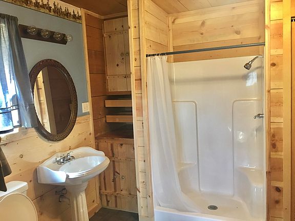 WOW!! This adorable cabin/ranch house is loaded with charm. 2 BR/1 Bath home with beautiful wood plank ceilings and charming cabin accents throughout! Sits upon +/- 3 acres and has a fenced pasture and Metal barn with lovely Tack room and 3 horse stalls and a wash stall. Round pen stays. Home is spacious with an adorable cabin style pet door leading to the fenced back yard. Too many charming details to list and believe me, pictures dont do this place justice. Come see for yourself. Call today for your appointment to see.