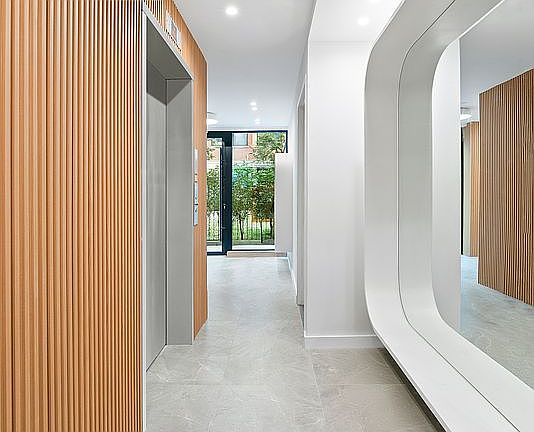 Step off your keyed elevator and into these light-filled homes, enhanced by expansive, floor-to-ceiling double paned insulated windows that flood the interiors with natural light amplifying the wide plank oak floors. No two residences are the same which makes these extremely unique. The spacious living and dining areas seamlessly extend to private balconies or terraces, creating inviting spaces for relaxation and entertainment. Sleek European kitchens feature custom two-tone cabinetry, exquisite, imported Calcutta marble stone slabs for the countertops and backsplashes and state-of-the-art paneled Bertazzoni and LG appliances.