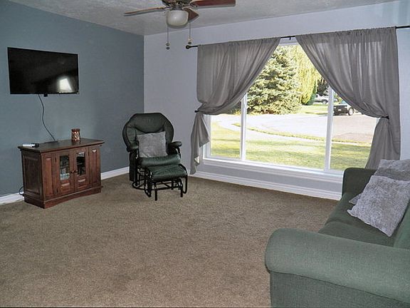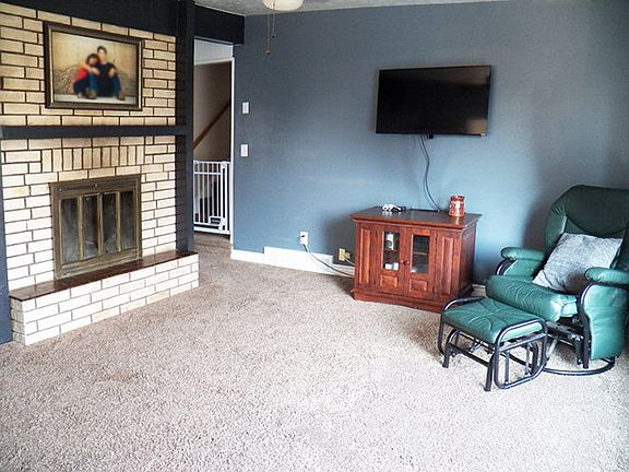Super Cute 3 Bedroom, 1 Bathroom Home Has Everything You Need! Newer large picture window brightens the main floor which includes cozy living room with brick fireplace. Kitchen has newer white cabinets, custom tile backsplash and includes all newer appliances! Upstairs is 3 bedrooms and full bathroom with custom tile surround bath/shower and hard surface vanity. Downstairs is nice size family room, bathroom with walk-in shower and separate laundry room. Home has newer roof, new siding, new gas forced air furnace, new garage doors all in approx. 2014. Two car detached garage with carport for more parking and breezeway for easy access to the garage. Extra parking on the west side of garage gives more room for your RV or toys. Established yard and trees with chain-link fence. This home sits in a quiet cul-de-sac in a sweet neighborhood. This one is a must see! Call today!