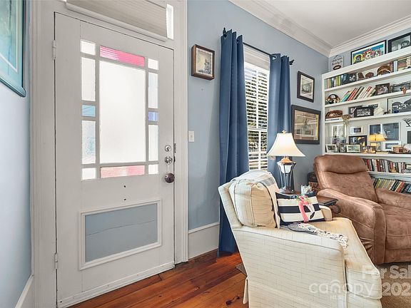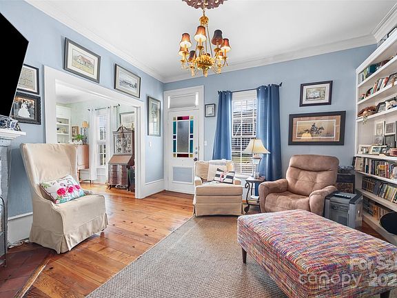 Rare opportunity to own a piece of history in the heart of York! You will fall in love with this charming historic home on a private lot with a fenced backyard, lush landscaping, a fire pit, a storage shed and a fish pond with a fountain. The antique hand-carved front door leads you into the home, where you'll find original hardwood floors, high ceilings with beautiful chandeliers, built in shelving in the living room and dining room, and ornate antique moldings throughout. The kitchen features a gas range and a walk-in pantry. The primary suite has two closets and a remodeled bathroom with a claw tub, a tile shower and an electric fireplace. The second bedroom in the rear of the home opens to the backyard and does not have a closet. Other features include a tankless hot water heater, a central vac, and a half bath off the kitchen added in 2023. Located just a couple of blocks from all of the shopping, restaurants and entertainment in the quaint village of York, this is the perfect place to call home!